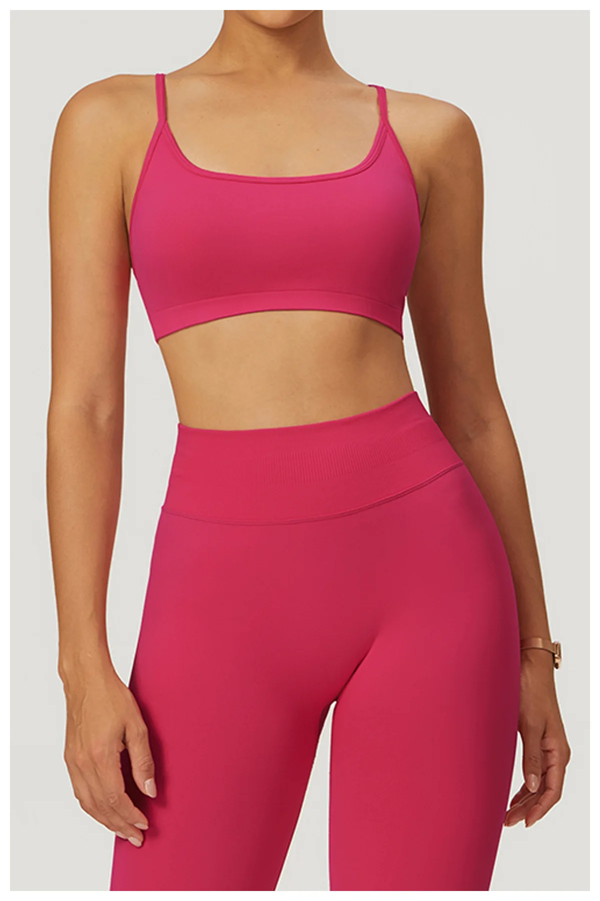 • Stylish Design: The seamless construction and elegant cross strap design make it a fashionable choice for both workouts and casual wear.
