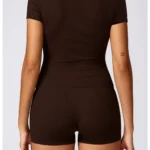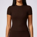 Introducing the Brown Short Sleeve T-Shirt, a perfect blend of style and functionality designed specifically for women. This versatile yoga t-shirt is crafted for those who appreciate elegance and performance, making it an ideal choice for your yoga sessions, fitness workouts, and other sporting activities. Whether you’re pushing through an intense workout or enjoying a relaxing day at home, this t-shirt will be your go-to companion.